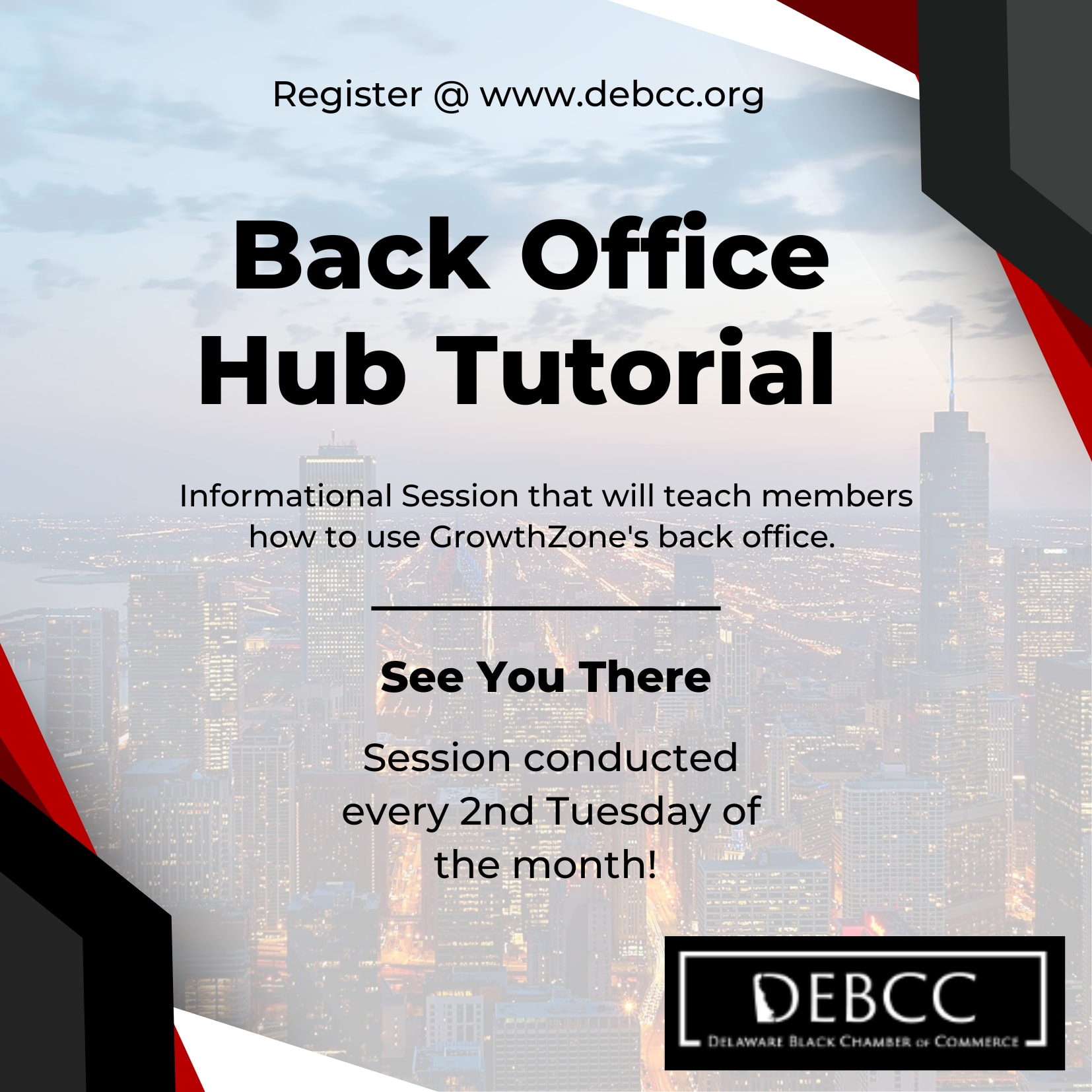 Informational Session that will teach members how to use Growthzone's back office. Session conducted every 2nd Tuesday of the month! Delaware Black Chamber of Commerce is inviting you to a scheduled Zoom meeting. Topic: Back Office Hub Tutorial Time: Mar 8, 2022 10:00 AM Eastern Time (US and Canada) Every month on the Second Tue, until Dec 13, 2022, 10 occurrence(s) Mar 8, 2022 10:00 AM Apr 12, 2022 10:00 AM May 10, 2022 10:00 AM Jun 14, 2022 10:00 AM Jul 12, 2022 10:00 AM Aug 9, 2022 10:00 AM Sep 13, 2022 10:00 AM Oct 11, 2022 10:00 AM Nov 8, 2022 10:00 AM Dec 13, 2022 10:00 AM Please download and import the following iCalendar (.ics) files to your calendar system. Monthly: https://us06web.zoom.us/meeting/tZIsduqgpzMjGNAjbjy9uOdFB0GsA_fpy0yQ/ics?icsToken=98tyKuGurzopEt2duRuDRpwABYj4b_zxmFxEjY18lh3vGnlGTQfQFLJlIZNAFsjJ Join Zoom Meeting https://us06web.zoom.us/j/86113898924?pwd=RlVjV0M3aFpxdXEwRnloUkwvUWtSZz09 Meeting ID: 861 1389 8924 Passcode: 073794 One tap mobile +13126266799,,86113898924#,,,,*073794# US (Chicago) +19292056099,,86113898924#,,,,*073794# US (New York) Dial by your location +1 312 626 6799 US (Chicago) +1 929 205 6099 US (New York) +1 301 715 8592 US (Washington DC) +1 346 248 7799 US (Houston) +1 669 900 6833 US (San Jose) +1 253 215 8782 US (Tacoma) Meeting ID: 861 1389 8924 Passcode: 073794 Find your local number: https://us06web.zoom.us/u/kbgTDC8fX9Images