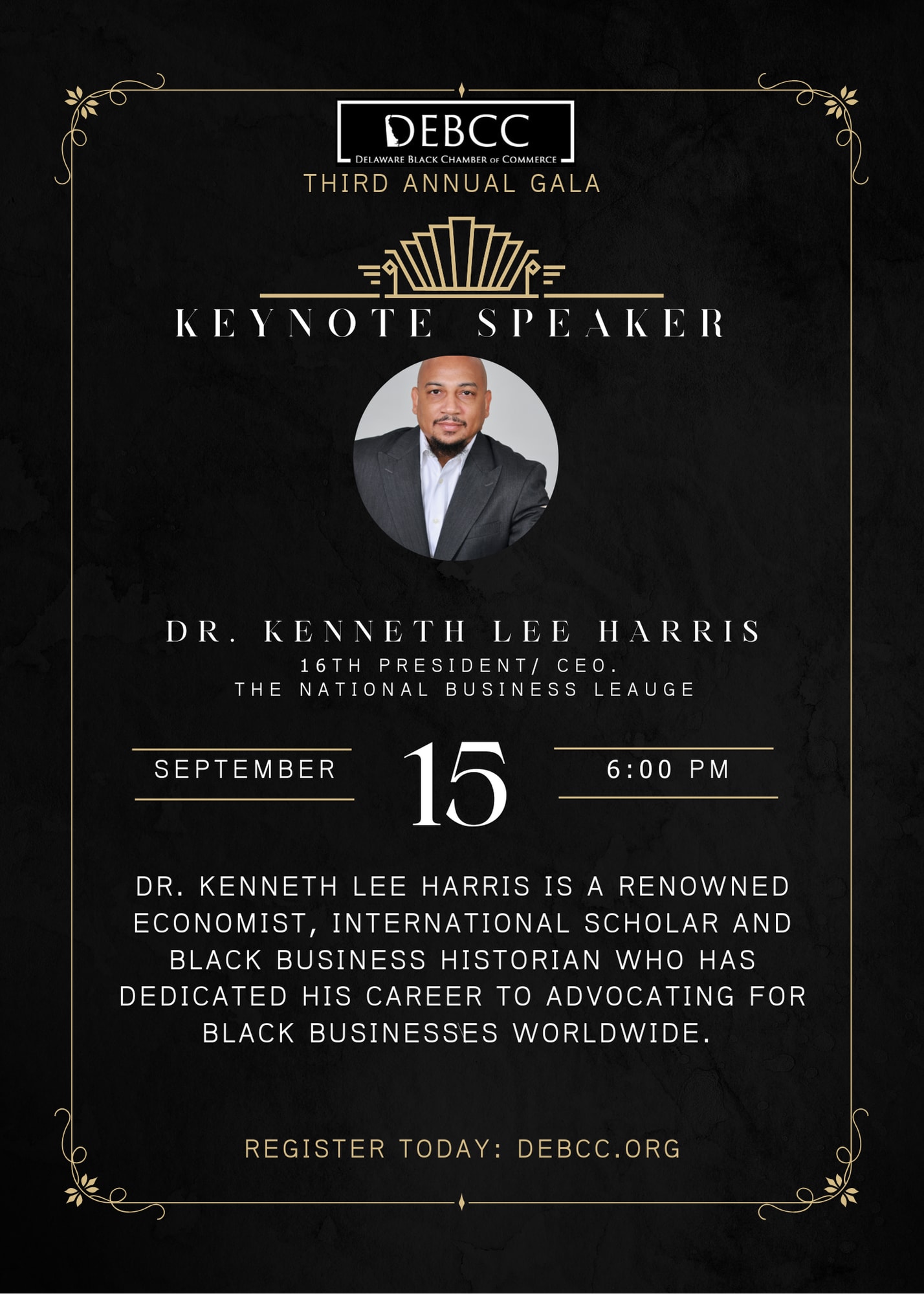 This year's keynote speaker is Dr. Kenneth Harris, 16th President/ CEO of the National Business League. Dr. Harris is a renowned Economist, International Scholar, and Black Business Historian Who Has Dedicated His Career to Advocating For Black Businesses Worldwide.