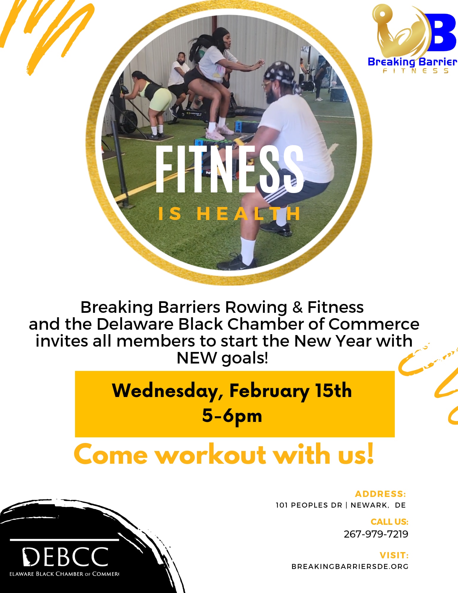 Breaking Barriers Rowing and Fitness and the Delaware Black Chamber invites you to start the New Year with new goals! Call 267.979.7219Images